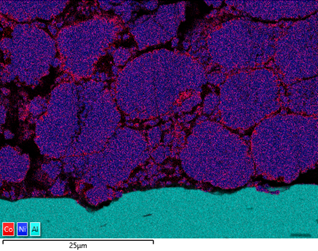 電池の正極材を製造する際に粉体が混入しますが、SEMで分析することができます。 一般的には、イオンミリングやFIB-SEM(集束イオンビーム)を用いて断面サンプルを作成し、分析するための領域を準備することで行われます。 これにより初期の粉末から最終製品までの化学変化をモニターすることができ、材料の化学変化と最終製品の性能を比較することができます。