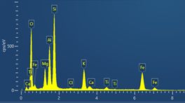 図. 2 (左) 検出基準を満たした粒子は検出され、色付けされます。 (右) 20kVでケイ酸塩粒子から得られた典型的なスペクトル