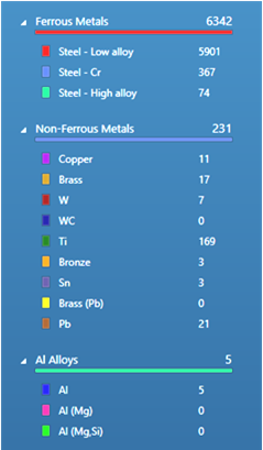 図. 4 フィルターの全領域における分類別の合計値とカラーキー