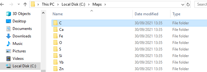 個々の元素マップを個別の元素フォルダにエクスポートする