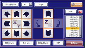 OmniProbeソフトウェアのモーションコントロールセクションでは、直感的な操作のために、モーション矢印が電子顕微鏡像に較正されています。