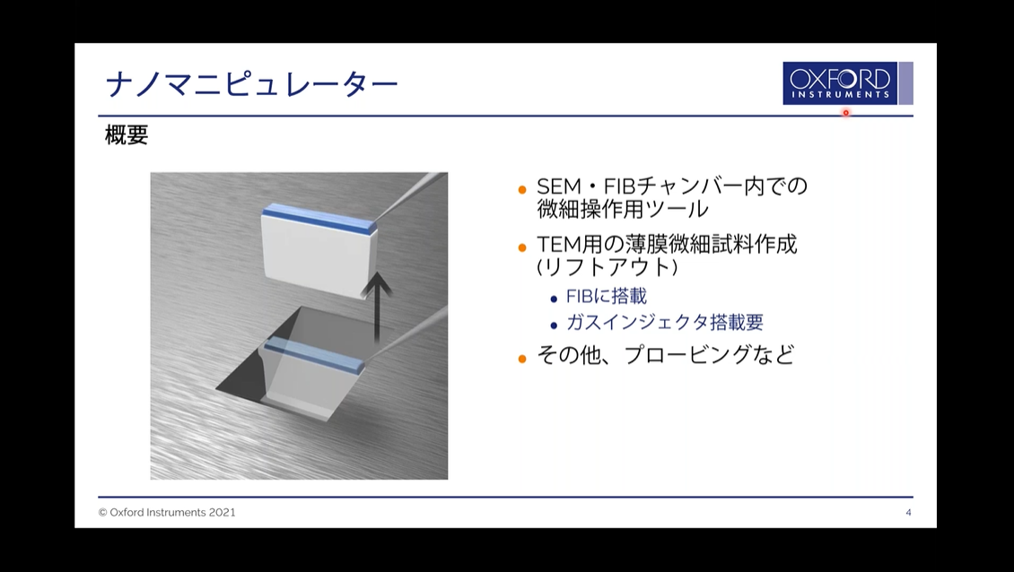 オックスフォード・インストゥルメンツ社のナノマニピュレータ― Omniprobeファミリーを軸に様々なアプリケーションをご紹介します。