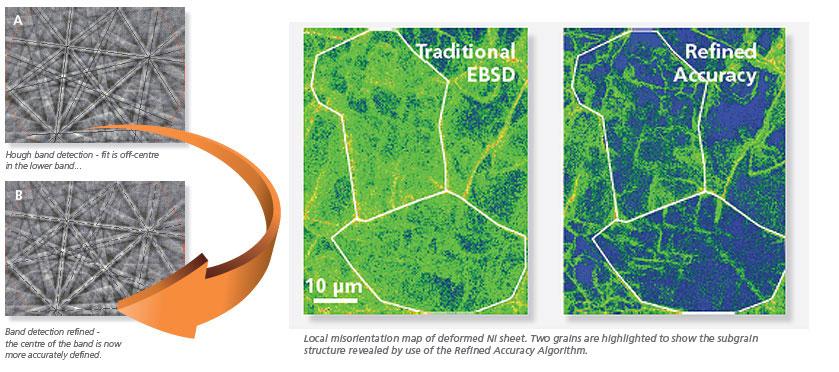 新しい革新的な「Refined Accuracy Algorithm*」は、従来のEBSD解析を拡張し、比類のない精度と詳細レベルを実現しています。