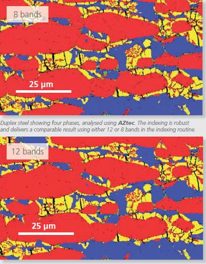 AZtec はバンド幅を比較することにより、結晶構造が類似した結晶相を正しく識別します。